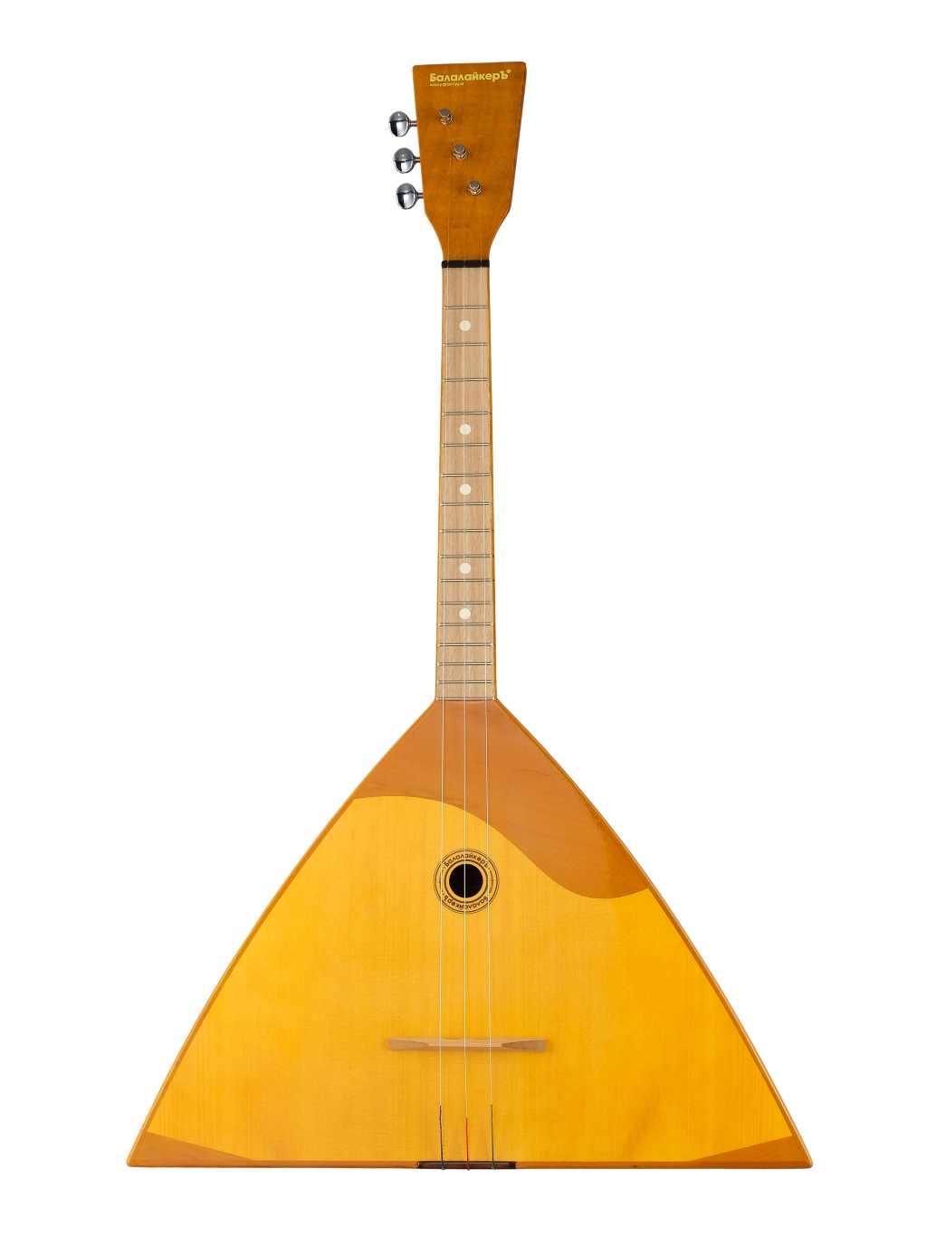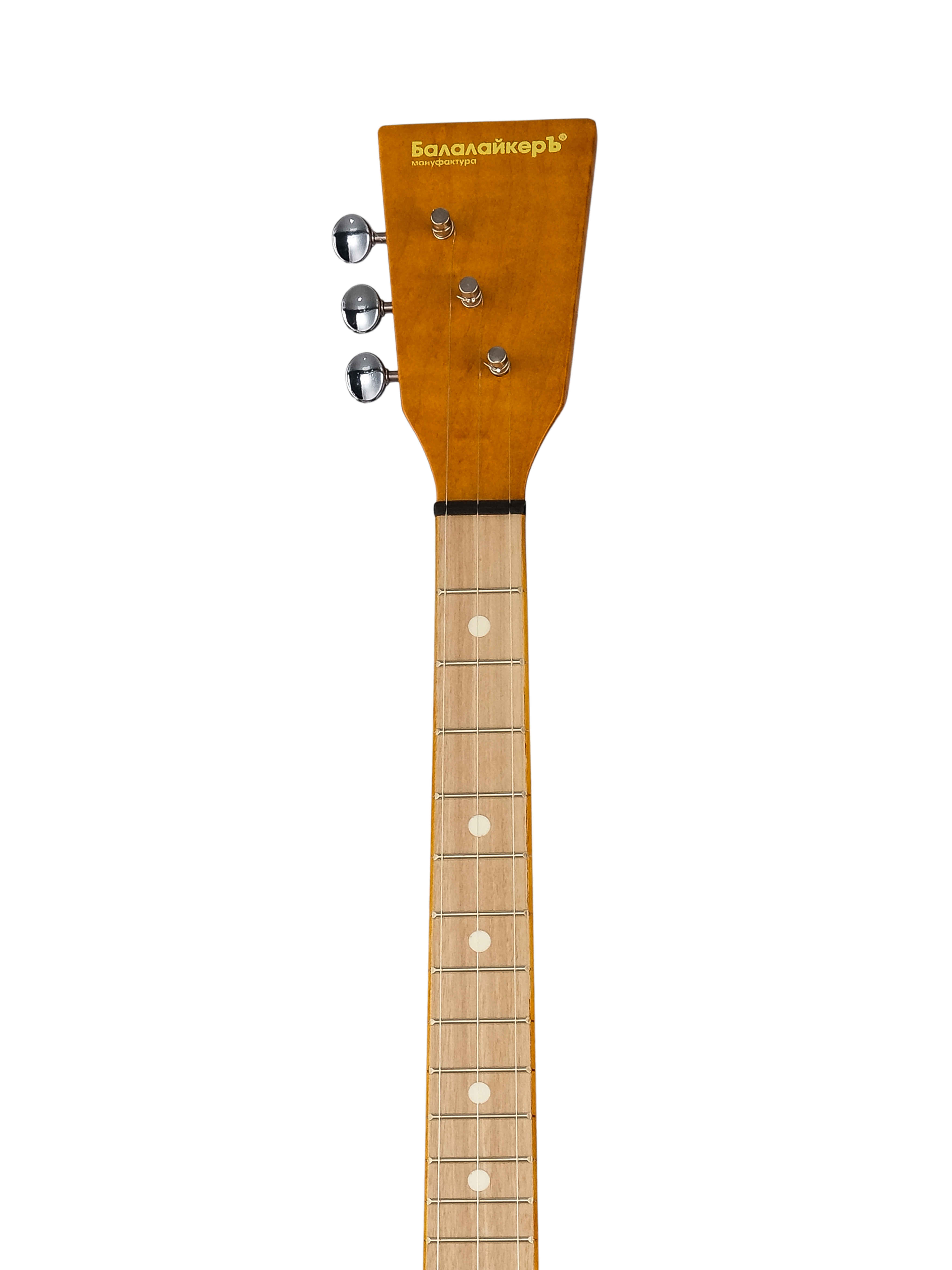 Балалайка традиционная. Специальная модель балалаек с пятиклёпочным куропусом. Узнаваемый образ инструмента складывается из среднеразмерного корпуса, яркого открытого звучания и характерного исторического декора. БалалайкерЪ Спутник Акустик наследует традиционные черты старых инструментов и при этом отвечает акустическим требованиям настоящего времени. Инструмент создан под впечатлением от пятиклёпочных балалаек артельного производства первой половины XX века. Особенностями стилистики этих инструментов стал гриф с ореховой накладкой и врезной фартук на деке.